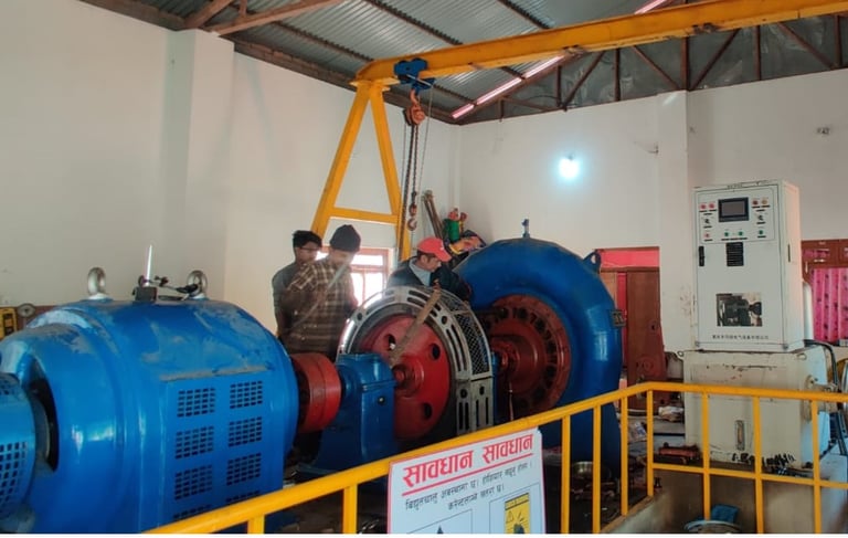 Giri Khola mini-hydro subproject is located in the Tatopani rural municipality. Jumla district of Karnali province. This project is developed by the AEPC/RERL. The beneficiaries' households are in 2023. The project consists of one unit of 200kW Francis turbine and generator set with auxiliary units of OPU. There are generator control and protection panels for the operation and monitoring of the plant. The generated power is evacuated through an isolated 11kV transmission line.